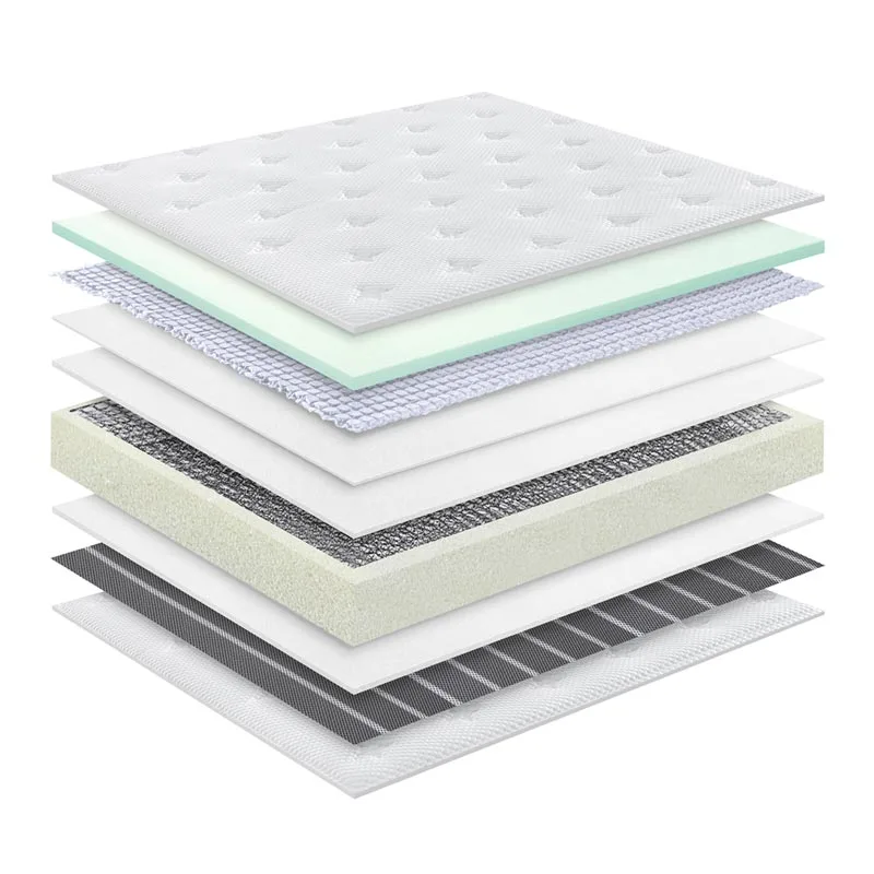 2. Многослойна научна формула: Матракът Ice Silk Knitted Fabric използва внимателно подбрани материали и е подложен на строг технически контрол, въплъщавайки прецизна изработка. Разполага с плетен плат от ледена коприна, пяна с висока плътност на отскок, дишащ 3D слой, индивидуално поставени пружини, здрав памучен филц, нетъкан текстил, мека пяна и дишащи материали.